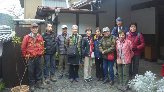 花園(10:50/11:08)=[JR]=保津峡(11:17/11:19)=[送迎バス]=水尾(11:27/入浴・会食/15:20)