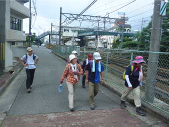 多田東小学校まで下ると登山道が終わりでアスファルトの市街地道路になる。暑さを気にしながら多田駅まで傾斜地の住宅街を下り続ける。多田駅に到着、丁度電車が発車間際で1本遅らせて待合室で休憩。待合室は空調が効いていて涼しい。少し汗がひいたところで妙見口の電車に乗り、BBQを楽しみに移動、妙見口からまた暑い中を20分余り歩き、ケーブルで山上駅へ。