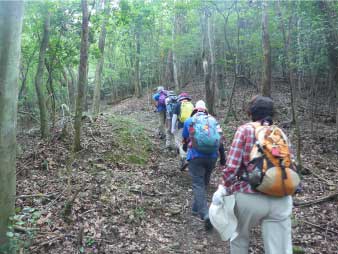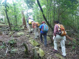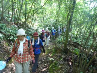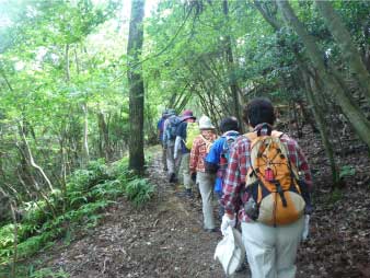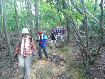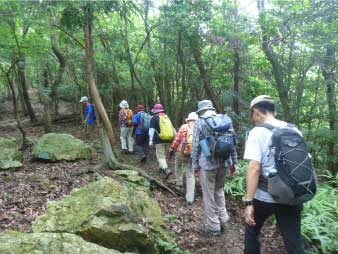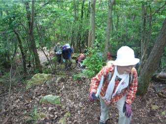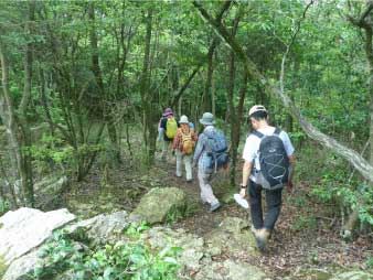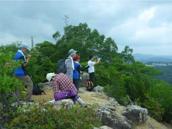 | 登山口を入ると、住宅街の急な登りからこんどは緩やかな登りになる。約20分ゆっくり登っていくと、展望岩に到着する。 |