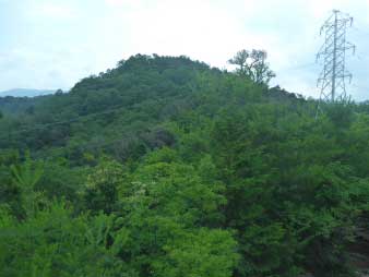 | 少し行って送電線鉄塔の下をくぐり、こんどは少し急な登りになる。展望岩から約8分で山頂に到着する。 |