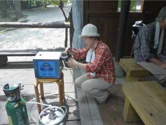 山上駅から少し登ると妙見の森に到着。早速、炭をいこしてBBQ開始、生ビールサーバーも慣れるまで泡ばっかりで乾杯。楽しみながらBBQ、みんなでわいわい言いながら食べるのも非常に楽しい。最後は、そうめんをゆがいてぶっかけそうめんでしめにした。 |