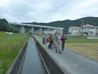 山陽自動車道の高架下を進み、農道の疎水に沿って書写へ、案内標識が要所要所に掲げてありそれに沿って進む。 |