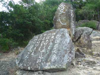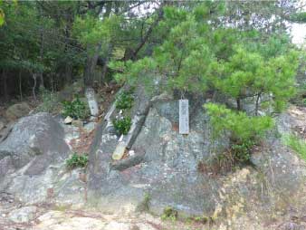 | さらに岩を登っていく、十丁辺りまで登ると、石碑があり、「愛心」「一隅を照らす」「西国二七番 はるばると のぼればしょしゃの やまおろし まつのひびきも みのりなるらん」と、刻まれていた。 |