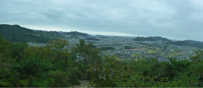 城山展望所より望む城山 説明板より |