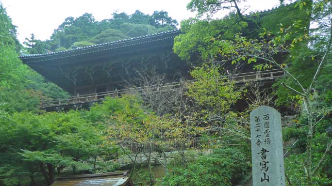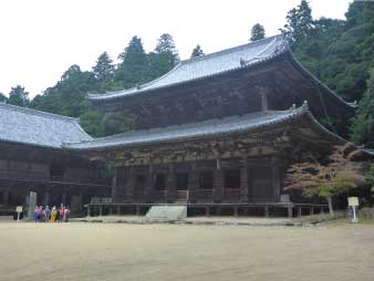| 仁王門を過ぎると伽藍等があり、権現坂を下ると、円教寺の摩尼殿の下に着く。摩尼殿は、舞台作りで有名で下から見上げると素晴らしい。 |