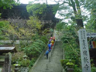 展望所からは雨で全く景色は見えない。展望所からほんの少しでロープウエイ山頂駅に到着、天気も良くないのでトイレを済ませ円教寺へお参りする。