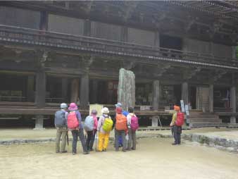 林道を下ると、三の堂に着く、大講堂、食堂(じkどう)、常行堂を見て、金剛堂から開山堂へとお参りした。開山堂の軒下には、左甚五郎作といわれる力士の彫刻が見られた。