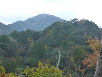 正面に来日岳が木々の間に見えた |