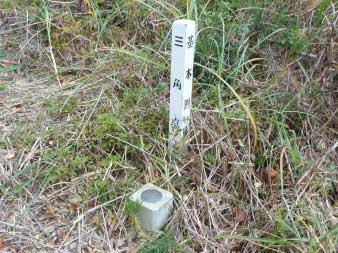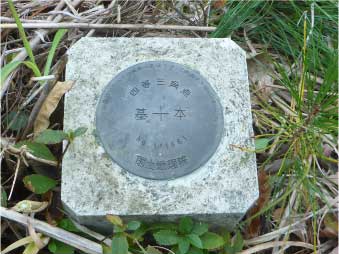 途中標高128mで休憩し、また歩き始める。ひと登りすると、大師堂跡に到着、ここに四等三角点がある。 |