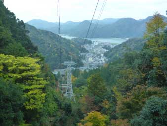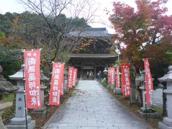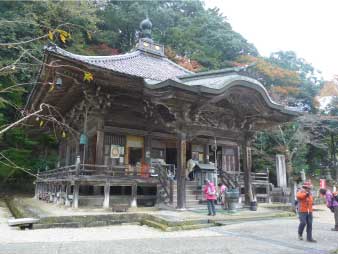 | かなり急な登山道を下り、ロープウエイ中間駅に下山。ここに温泉寺があり、立ち寄って今度は参道を下る。 |