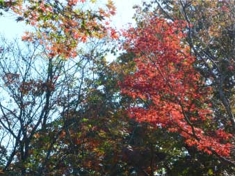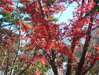いくつかのアップダウンを繰り返し、標高330m辺りの紅葉平に到着、もみじの紅葉が美しい。東屋で休憩して、山頂へと向かう。