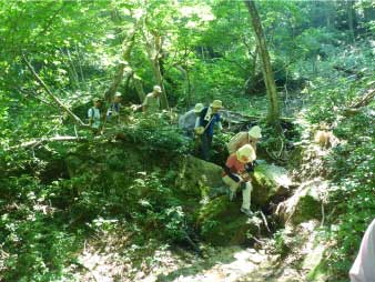 ガリバー旅行村へ 八淵ノ滝入口に無事下山 |