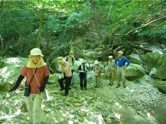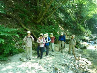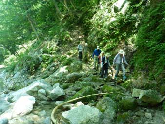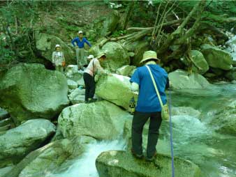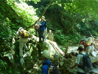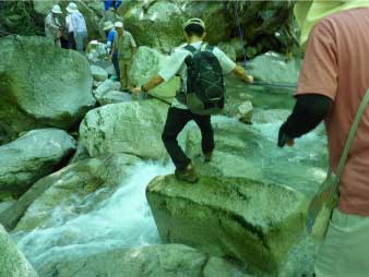 魚止ノ滝へ 渡渉してホッと一息 |