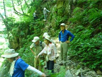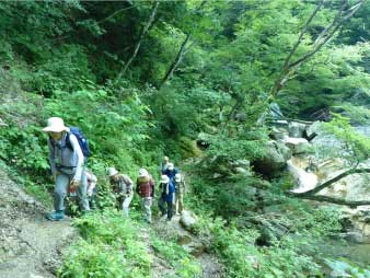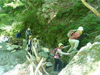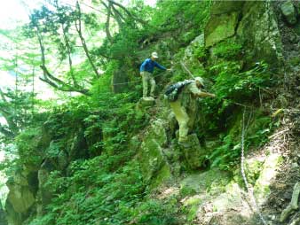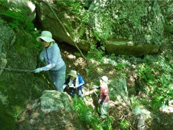 「魚止の淵方面(魚止、障子、唐戸)のコースと、大摺鉢より上流(小摺、屏風、貴船、七遍返し)のコースは、岩場が崩落し大変危険です。滑落死亡事故も多発しております。登山初心者の方は大摺鉢以外のコースはご遠慮いただきますようお願いします。」 |