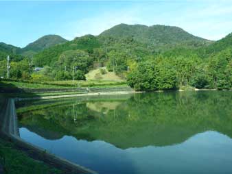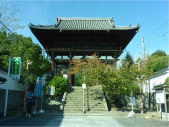| 道標のあるお地蔵さんを過ぎ、山口神社へと登っていく。大池が見えてきて池に二上山が映っていた。公園を抜け、大龍寺から竹やぶの道を登っていくと突き当たりになり、祐泉寺に到着する。 |