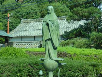 相撲館をあとにまっすぐ進むと、当麻寺の山門に着く、先に進み本堂にお参りした。本道の右手には、中将姫の像がある。黒門をあとに二上山へと歩き始めた。 |