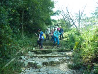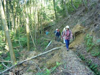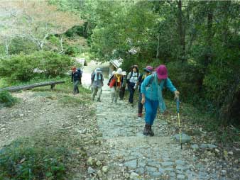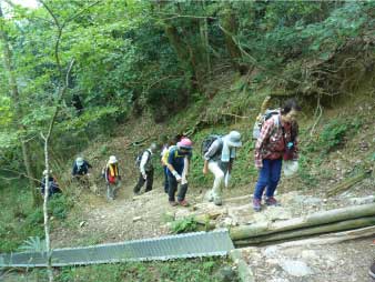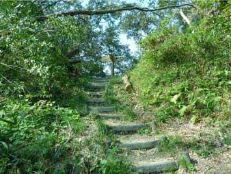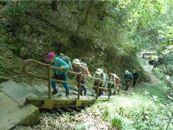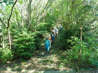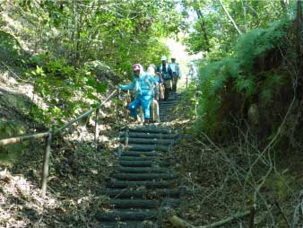 ろくわたりの道を行く 標高差50m程の階段を下る |
