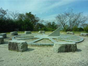 雌岳の山頂には、三等三角点があり、中央には大きな日時計がある。展望は、大和平野と金剛山系が望める。ここで昼食にし、ゆっくりくつろいだ。 |