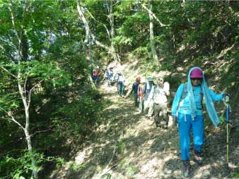くろわたりの道を登り返していくと、鹿谷寺跡へ下ってくる分岐になり、さらに登っていく。せっかく下ったのに登り返しになり少し厳しい。