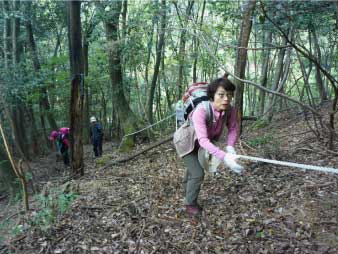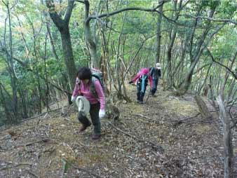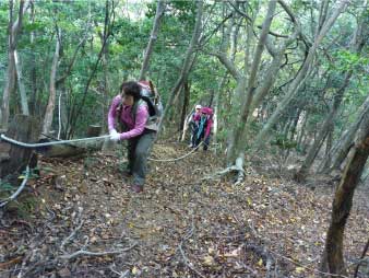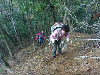天ヶ城山へ 急斜面を登る |