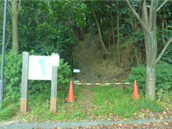 天ヶ城史跡 登り口(標高5m) |