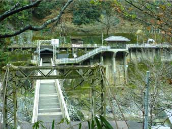 | トロッコ保津峡駅の橋に到着、昔の散策マップを見て楽しむ。その散策案内板は、ここが昔の保津峡駅だった頃の案内板でなんだか昔が懐かしく感じられた。 | |