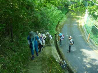 螺旋状の道を下り、登山口に全員無事下山した。登山口の耳成公園で一息ついで、今日の温泉、あすかの湯へ太陽いっぱいの炎天下を15分ほど歩いて到着した。温泉に浸かってゆっくりした。