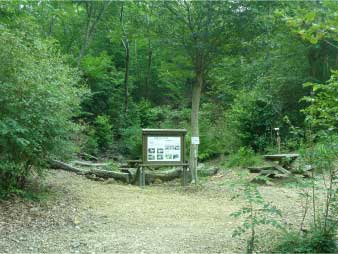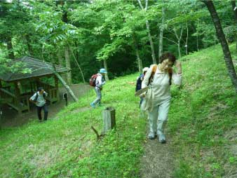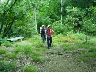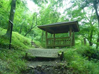 | 東屋で少し休憩して更に上へと、大峰道を登っていく。登りきると、広場になっていて、林間広場でベンチなどがある。 |