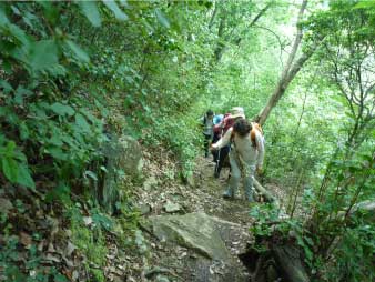 大峰山へ どんぐりの遊歩道から登山道になる |