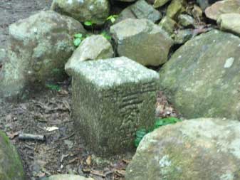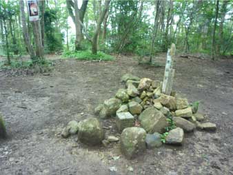 | 遊歩道はここまでで、ここから山道になる。大峰山への尾根道で結構厳しい、少し登った標高320mに桜の園3級基準点がある。手作りの案内板では、山頂まで1.2kmだ。 |