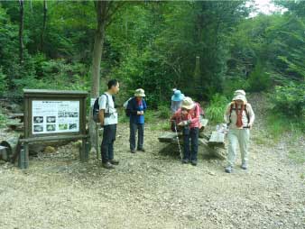 周回路は、今回登ったさくらの道、逆コースが下山時東屋から沢まで下ったさくらの道の続き、そしてどんぐりの道、もみじの道で周回になる。ガイドでは紹介されていた。下りに通ったどんぐりの道は、少し荒れていているが、さくらの道は家族向き、周回路は一般向きとして案内されている。 |