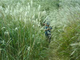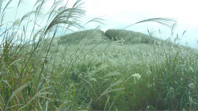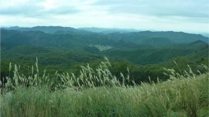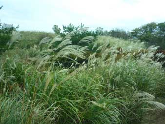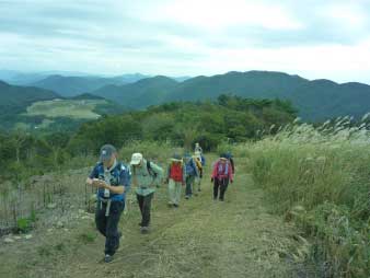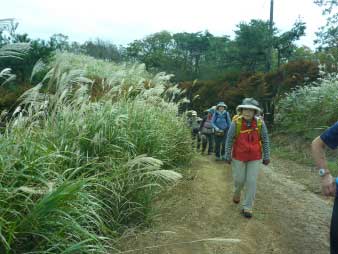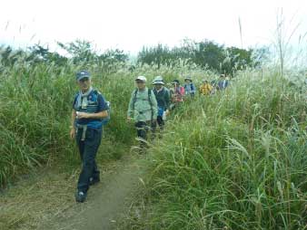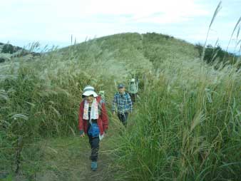 深山へ すすきの中を進む |