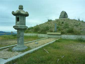 | ピークから一旦下り登り返すと山頂に着く。山頂の本の手前で車道に出てそこを登ると、レーザーアンテナが見える。アンテナの横を通過すると、正面に深山宮があり、深山の山頂になる。 |