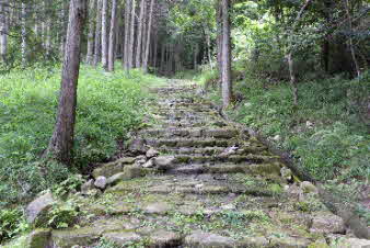 八幡神社まで標高差60mの石段が続く |
