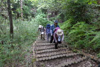 雪野山へ 古い石段から近年の階段に |