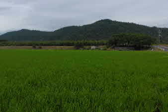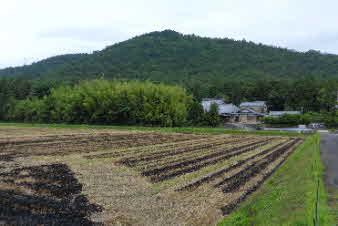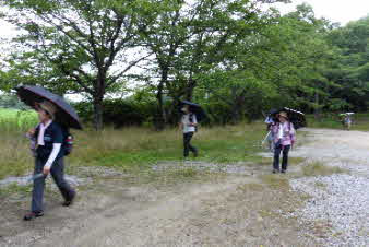 近江八幡駅に集合し、9時20分発の北畑行きのバスで向かった。羽田西BSで下車し、少し行くと正面に雪野山の山並みが広がって見える。ミストのような雨が降ってきたがすぐにやんだ。 |