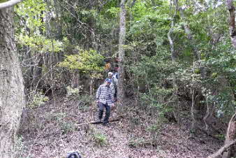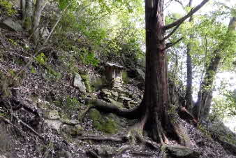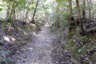 | お参りできたところで羽束山山頂をあとにし、峠へと下っていく。急な下りで注意しながら下っていく、崩れた箇所もあり少し厳しい。なんとか峠にまで下った。 |