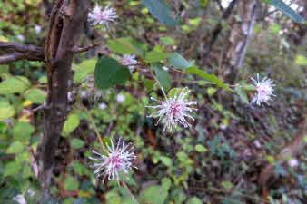 標高440m辺りで尾根に出る、山頂でhなかった。尾根をしばらく歩くとまた急登になってくる。これを登りきると山頂だ。山頂手前で可愛い白い花が咲いていた。 |