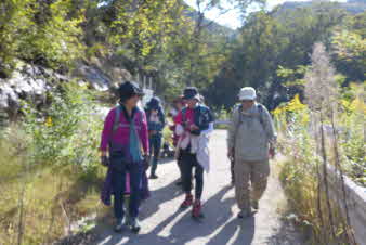 砂防ダムから先は広い舗装した林道で余裕が出て歩き出した。周囲が紅葉して秋の風情を楽しむことができた。 |