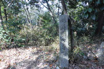 | 鳩ヶ峰は標高143mで二等三角点になっていて、三角点の解説板が掲げられている。三角点の点名は、八幡(はちまん)で、ヤハタとは読まないで石清水八幡宮のハチマンから決めたのだろう。山頂に小さな祠があり、奥の三角点横には鳩ヶ峰国分寺跡の標石があった。記念写真を撮って下山開始、石清水八幡宮へと向かった。 |