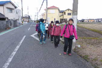 登山口に全員無事下山(標高100m) 新家駅へ2.9km |