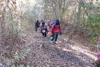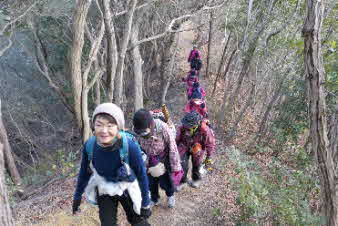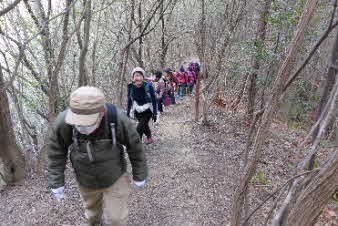 | 2月18日、山歩き会で泉南のお菊山に行った。京橋を出て1時間泉南の長滝(ながたき)駅に到着、ここから歩き始める。上之郷小学校を過ぎ、意加美神社の赤い橋に25分ほどで到着。一息ついで阪和道高架下をめざして登って行く、高架下に車両止めのゲートがあり先へと進んで行く。 |