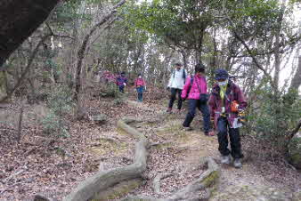 お菊山へ 尾根筋を登っていく(標高165m) |