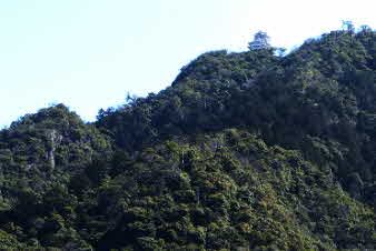 岩の登りもさらに傾斜がきつくなり、山頂が近づいてくる感じだ。烏帽子岩から約1時間奮闘の結果、金華山の稜線に到着した。 |