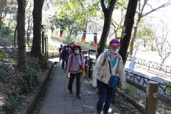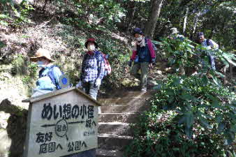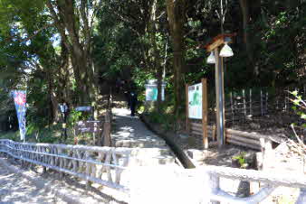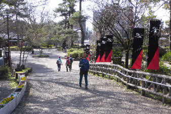 | 岐阜公園に入り、支度をしてロープウエイ乗場へと進む。今回の登城は、殿様ではないので下から歩いて登ることにした。ロープウエイ乗場から少し先に行くと、登城するめい想の小道登山口がある。 |