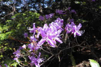 急な岩尾根を登り続ける感じでかなり厳しい。ピンクのミツバツツジが頑張れと勇気づけてくれているようだ。