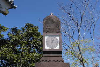 フェンスがある建物の裏の広場に三角点がある。三角点は、二等三角点で標高329mで点名は金花山だ。登り着いたところに戻り、岐阜城を背景にみんなで記念写真を撮った。 |