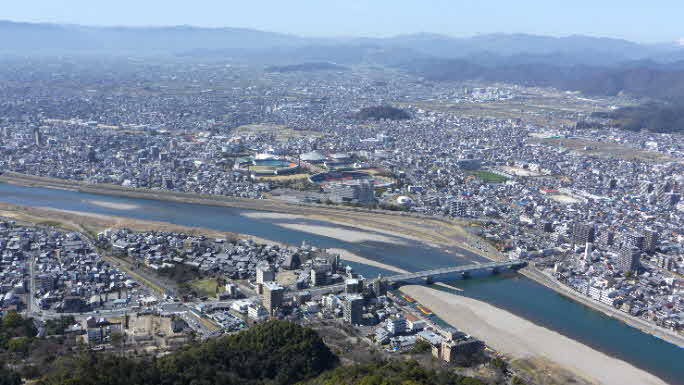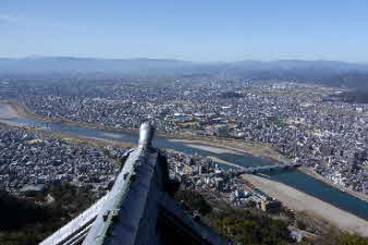 現在の城は、昭和31年に復興され模擬天守で鉄筋コンクリート造り、岐阜市のシンボルとなっている。城の上からは素晴らしい展望が楽しめ、眼下に岐阜市街が、遠くに能郷白山、北アルプス、乗鞍岳、御嶽山が望めた。御嶽山、能郷白山などまだ真っ白な雪を頂いた勇姿が望めた。