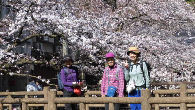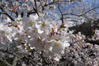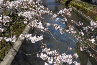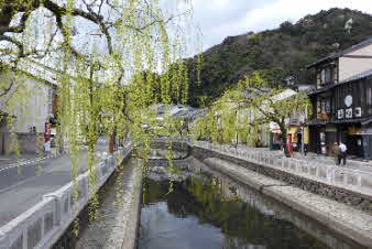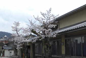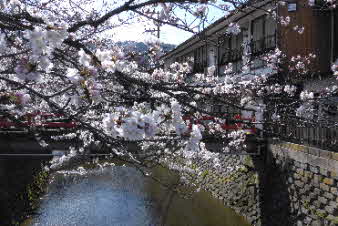 | 温泉寺のさくらを楽しんで薬師堂へと下山した。薬師堂にお参りし、城崎温泉街を散策した。城崎温泉元湯で湯気を顔に浴びて温泉街へ、途中から右側の通りに入りさくら見物、京都の地名のついたミニ京都を楽しんだ。 |