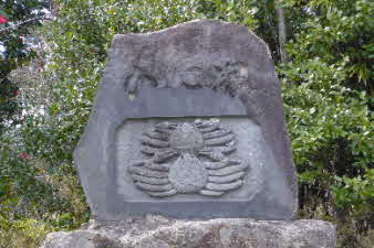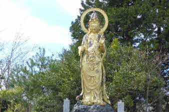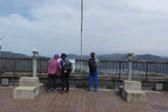 | ほどなく大師山山頂の遊園地に到着。ロープウエイ、売店など定休日で誰もいなくひっそりしていた。展望台に上がり城崎温泉の町並など景色を楽しんだ。山頂には、かに塚、慈母観音像そして大師堂がある。 |